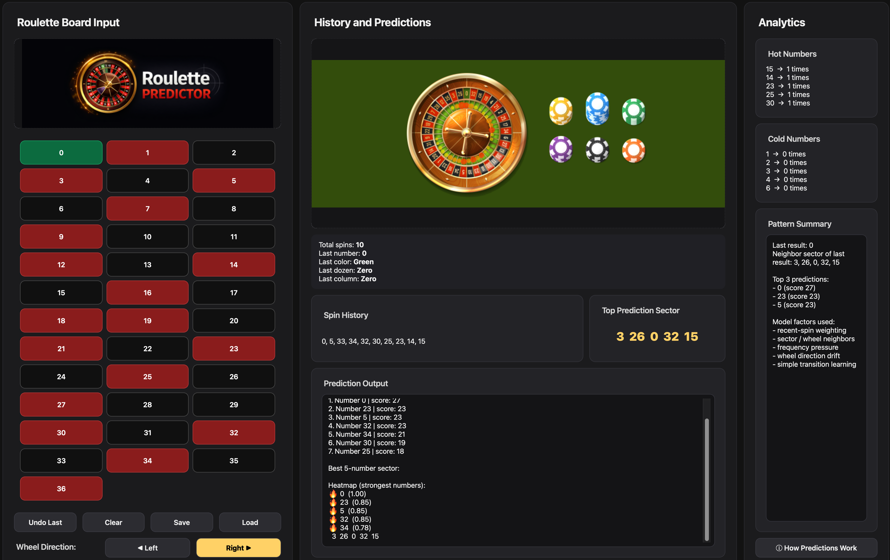 Roulette Predictor analyzes spin history and statistical trends in real time, helping users identify potential number zones and structured betting opportunities.